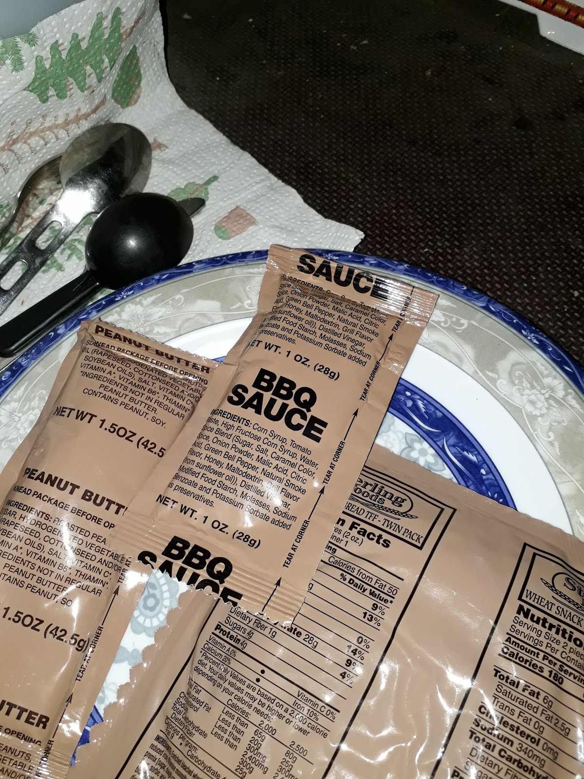 Cold ratio, no heatertortillas, peanut butter, seed pound cake, corn kernels